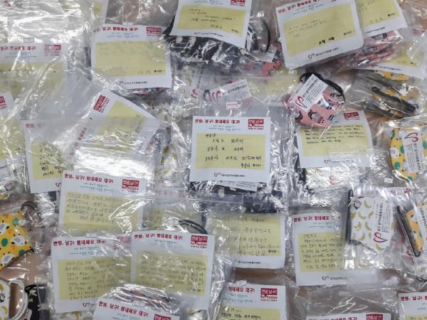 자원봉사자들은 지난 1일부터 자택에서 한땀 한땀 정성껏 재봉을 하여 어린이용 면마스크 464개를 직접 제작하였으며, 코로나 극복 응원 메시지지도 직접 작성하여 면마스크와 함께 남구에 소재한 민간 어린이집에 전달하였다.