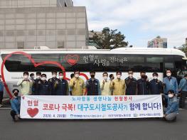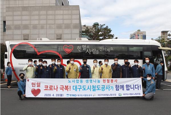 대구도시철도공사(사장 홍승활)는 4월 20일(월) 상인동 본사 및 차량기지사업소 3곳(월배, 문양, 칠곡)에서 전사적으로 노사합동 생명나눔 헌혈봉사 활동을 진행했다고 밝혔다.