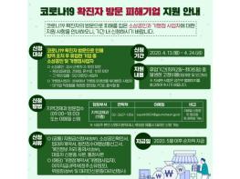 지원대상은 코로나19 확진자 방문으로 피해를 입은 소상공인 업체와 대기업 직영점을 제외한 편의점, PC방, 음식점 등 가맹점사업자다. 소상공인의 경우 제조업·광업·건설업·운수업은 상시 근로자 수 10인 미만, 그 외 업종은 5인 미만 사업장이면 지원받을 수 있다.