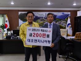 대오엔지니어링(대표 노정규)에서 4월 17일(금) 봉화군청을 방문하여 코로나19 극복을 위한 특별성금 200만원을 기탁했다.