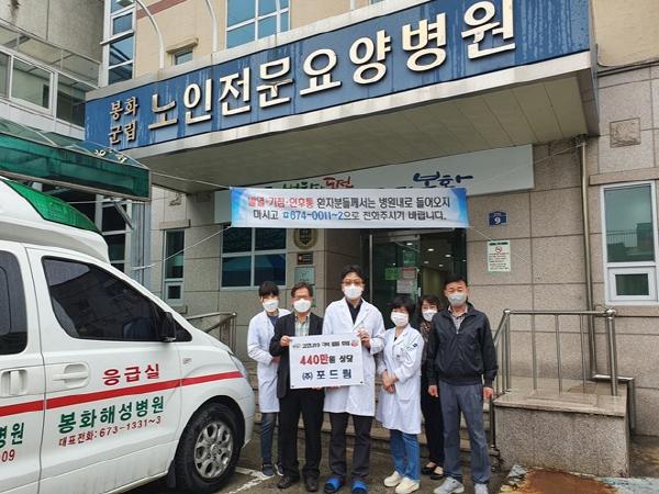 ㈜포드림(대표 김원국)에서 4월 17일(금) 봉화 군립노인전문요양병원에 방문하여 대구 스타트기업 ㈜덕산코트랜에서 제조한 440만원 상당의 기화식 살균기 1대를 전달했다.