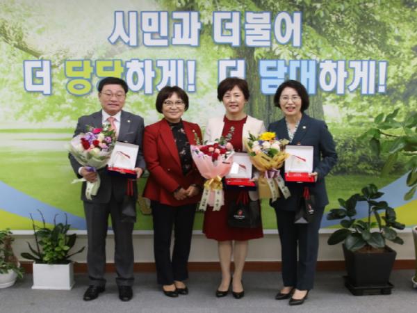 안양시의회 이호건(의회운영위원장)·정맹숙(총무경제위원장)·김필여(보사환경위원) 의원은 각각 의정활동개선·예산절감·행정감사분야에서 경기도시·군의회의장협의회 제9회 의정활동 우수의원으로 선정되어 21일 안양시의회 의장실에서 시상식을 가졌다.