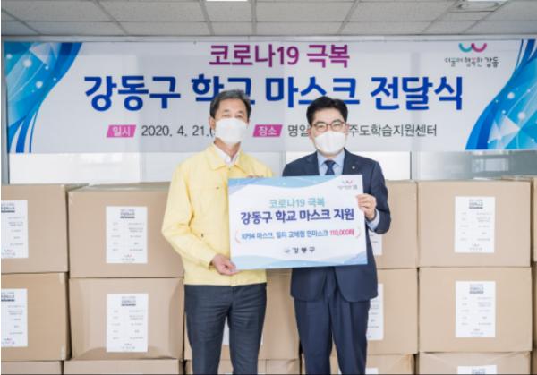 이정훈 강동구청장은 “코로나19 여파로 학생들이 집에서 온라인 개학을 맞았지만, 등교 개학을 대비해 예방 차원에서 마스크를 전달하게 됐다. 학생들이 코로나19에 노출되지 않도록 지원에 힘쓰겠다”고 말했다.