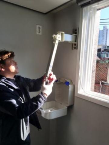 마포구가 시행하는 화재취약주택 피난구조설비(완강기) 설치 지원 사업을 통해 자택에 무료로 완강기를 설치한 김소영(성산동, 가명)씨가 설치 전문가로부터 설명받은 완강기 사용법 및 사용 시 주의사항이다.