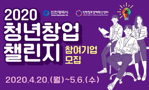 “2020년 청년창업 챌린지”는 인천광역시와 인천창조경제혁신센터가 함께 청년 (예비)창업자의 창업 사업화를 지원하는 프로그램으로, 평가를 통해 선정된 청년 (예비)창업자에게 각 1,000만원의 사업화 자금을 지원하며, 실무 중심의 교육 및 멘토링을 통한 창업자의 역량 강화, 성과공유회를 통해 서로의 경험을 공유할 수 있도록 지원한다.