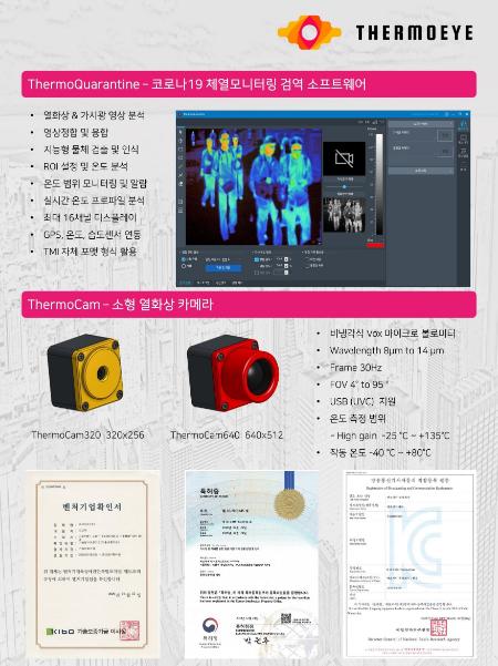 국내 열화상 카메라 시장은 해외 의존도(84%)가 높아 전염병 유행시 품귀현상이 발생하는 가운데 열화상 영상 처리기술과 ICT 기술을 결합해 발열자 검출에 특화된 검역 솔루션을 개발, 새로운 시장을 개척한 것.