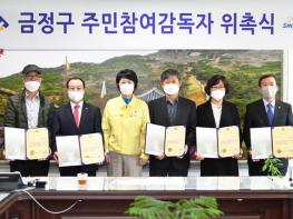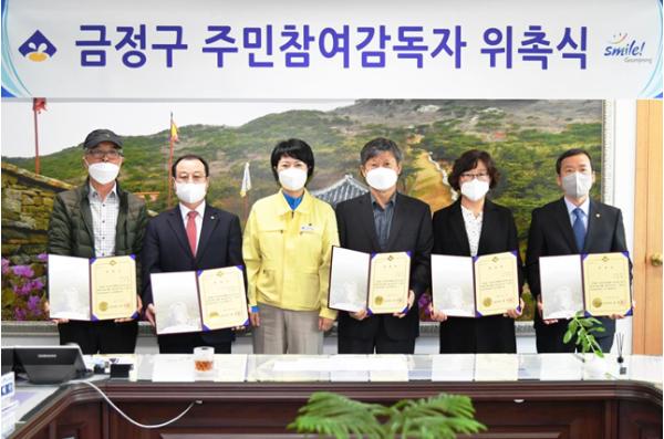부산 금정구(구청장 정미영)는 주민생활과 밀접한 관련이 있는 공사를 주민이 감독하고 공사 과정에 주민 의사를 적극 반영하는 주민참여감독자 제도를 내실 있게 운영하기 위해 2020년 1차 주민참여감독자 위촉식을 지난 21일 개최했다.
