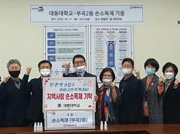 대동대학교(총장 배순철)는 지역사랑 실천과 코로나19 극복을 위해 지난 21일 금정구(구청장 정미영) 부곡2동에 교내 두피&모발연구소에서 자체 개발한 손소독제 325개를 전달하였다. 손소독제는 관내 취약계층 325세대에 배부될 예정이다.