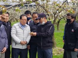 조광한 남양주시장이 지난 21일 배 꽃눈 저온피해 현장을 직접 방문하여 농업인을 위로하고 애로사항을 청취하는 등 구체적인 피해 상황을 살폈다.