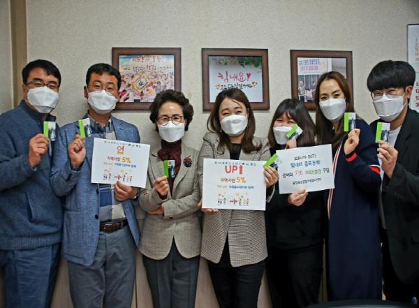 ‘지역사랑 5% UP’ 캠페인은 급여의 5%를 지역상품권(지역화폐)으로 구매하여 사용하는 캠페인으로 도내 자원봉사센터 직원들이 지역경제 활성화에 앞장서야 한다는데 공감해 자발적으로 참여하고 있다.