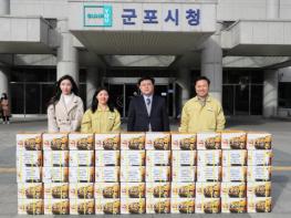 전남 무안군(군수 김 산)은 지난 21일 자매도시인 경기도 군포시에 군 특산물인 황토고구마로 만든 군고구마 50박스를 전달했다고 밝혔다.