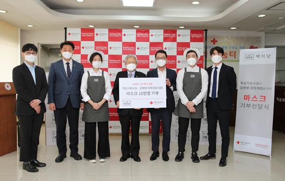 4월 21일 디저트 카페 ‘백미당’이 대한적십자사 서울특별시지사(회장 김흥권)에 마스크 10만 장과 유기농 우유 4,800개를 기부했다.
