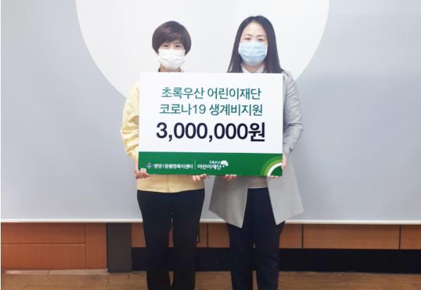 초록우산어린이재단 울산지역본부는 22일 오전 10시 병영1동 행정복지센터를 방문해 지역 내 저소득가정 아동세대를 돕기 위한 긴급지원금 300만원을 전달했다.