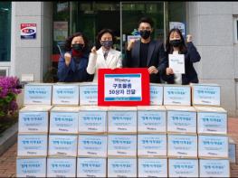 비영리 민간단체(NGO) ‘(사)함께하는 사랑밭’이 22일 코로나19로 어려움을 겪는 취약계층을 위해 써달라며 마스크·손소독제·식량 등이 든 구호물품 50상자를 광산구 하남동 행정복지센터에 전달했다.