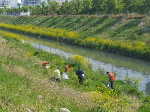 공단2동(동장 박진상)에서는 4. 23(목) 10:00 공단2동통장협의회 회원 30여명이 참여한 가운데 광평천 환경정비를 실시하였다.