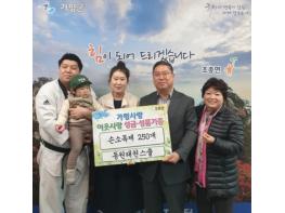 가평군 동원태권스쿨(관장 동상운)는 지난 21일 조종면행정복지센터(면장 박재근)를 찾아 취약계층을 위한 휴대용 손소독제 250개를 기탁하였다.