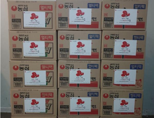 이번 후원은 홈플러스 여월점의 배송 협조를 통해 5만원 상당의 밑반찬 등 간편식품을 각 가정마다 비대면으로 전달하였다.