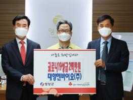 대양엔바이오(주)(대표 박종운)는 4월 22일 영양군청을 방문하여 200만원의 성금을 기탁하며 코로나19 극복에 동참하였다.