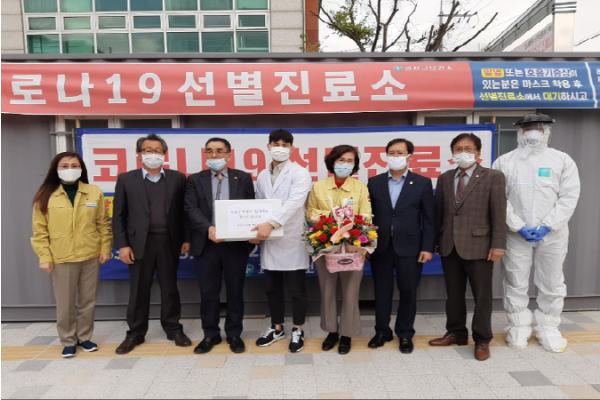 이날 박해운 부군수와 신우식 협의회장은 “투철한 책임감으로 코로나19에 용감하게 맞서 싸운 의료진들의 헌신에 아낌없는 감사와 응원을 보내드린다”며, “오늘 전달한 꽃과 홍삼이 의료진의 심신 안정과 스트레스 해소에 조금이나마 도움이 됐으면 한다”고 전했다.