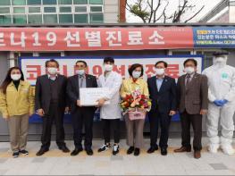 박해운 괴산부군수와 신우식 괴산군사회단체협의회장이 코로나19에 맞서 방역 최 일선에서 사투를 벌이고 있는 의료진들을 격려하기 위해 22일 관내 선별진료소와 보건소를 찾았다.