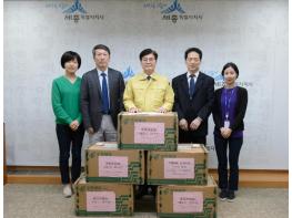 세종시가 받은 구호물품은 약 1천만원 상당의 N95 의료용 마스크 2,000장과 일회용 외과 의료용 마스크 10,000장이다.