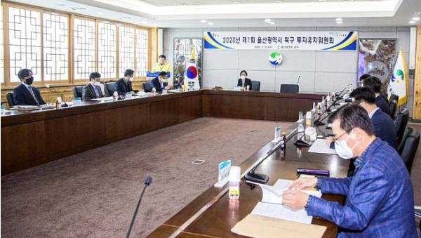 울산 북구는 22일 구청 상황실에서 2020년 제1회 북구 투자유치위원회를 열고, 투자유치기업 재정지원 건을 심의했다.