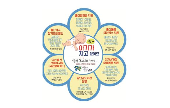 남구 관계자는 “우리 구 관내 합계출산율은 0.88명 수준으로 초저출산 시대에 들어간 상태이다. 저출산 문제에 대한 심각성을 알리고, 출산과 보육 등 아이 키우기 좋은 여건을 만들기 위해 이 사업을 추진하는 만큼 좋은 결실을 맺을 수 있도록 노력하겠다”고 밝혔다.