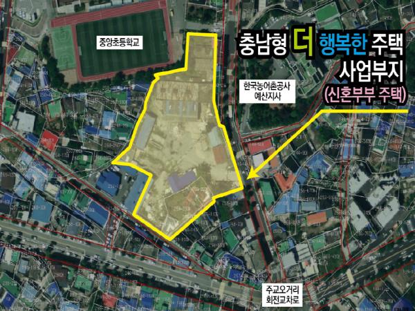 충남형 더 행복한 주택은 2022년 말까지 군과 충남도가 함께 추진하는 사업으로, 예산읍 주교리에 방치된 (구)충남고속 정비공장 일원에 190억원을 투입해 청년, 예비신혼부부, 결혼 7년 이내 부부 등을 위한 신혼부부주택 75호를 공급한다.