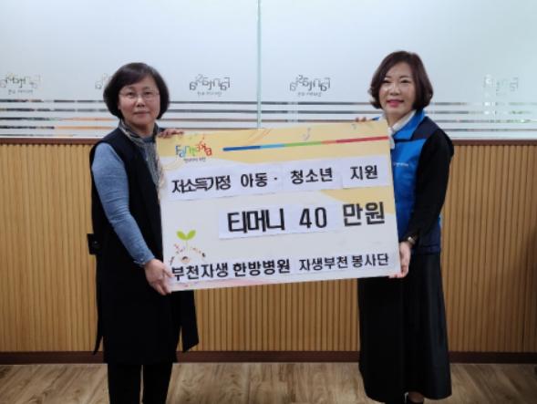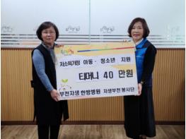 부천 자생한방병원 부천 자생봉사단(회장 유정숙)은 지난 22일 부천시에 거주하는 저소득 가정 아동·청소년에게 전달해달라며 부천시에 티머니 교통카드 4만 원권 10장을 기탁했다.