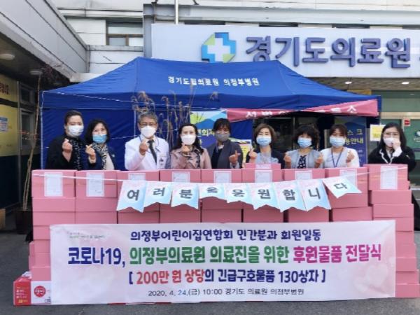 의정부어린이집연합회 민간분과(위원장 송은희)는 4월 24일, 코로나19 확산 방지와 예방에 헌신하고 있는 경기도의료원 의정부병원 의료진들을 위한 긴급구호물품을 전달했다.