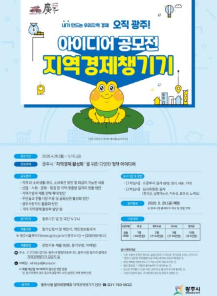 광주시가 지역경제 활성화를 위한 다양하고 참신한 아이디어 발굴을 위해 ‘톡톡 생각! 시민과 함께하는 광주시 지역경제 챙기기 아이디어 공모전’을 개최한다.