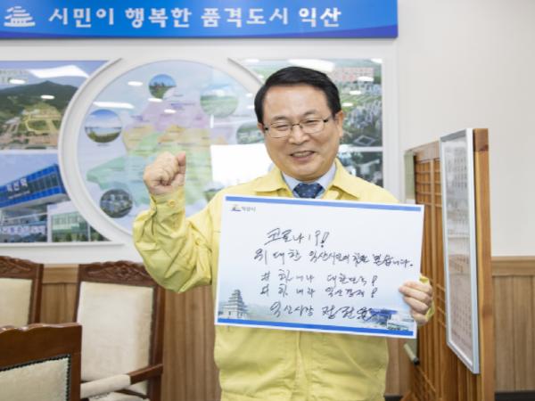 정헌율 익산시장은 코로나19 위기를 이겨내기 위해 하나로 결집된 익산 시민들에 감사한 마음을 담아 “코로나19! 위대한 익산시민의 힘을 믿습니다. 힘내라 대한민국! 힘내라 익산경제!”를 손글씨로 전하며 코로나19 종식을 염원했다.