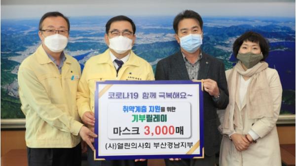 창원시(시장 허성무)는 23일 (사)열린의사회 부산경남지부(지부장 하해근)가 코로나19 예방을 위한 KF94 마스크 3,000매를 기탁했다고 밝혔다.