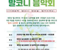 은평구(구청장 김미경)마을공동체지원센터(센터장 이춘희)와 북한산 힐스테이트1차 아파트 입주자대표회의는 코로나19 장기화로 인해 지친 주민들의 마음을 위로하고, 더불어 이웃간 소통의 기회를 갖고자 4월 25일(토) 오후 3시 30분 은평구 불광동에 있는 북한산 힐스테이트1차 아파트 중앙 분수 광장에서 ‘아파트 발코니 음악회’를 개최한다.