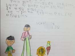 최근, 월드비전에서 긴급구호금 지원받은 한 아동은 손편지와 함께 감사의 마음을 담은 멋진 그림을 월드비전에 전달하였다. 아동의 보호자는 “코로나19의 공포와 두려움으로 힘겨운 생활을 하고 있었지만, 후원금이 큰 보탬이 되었다”라며 다시 한번 감사드린다고 전했다.