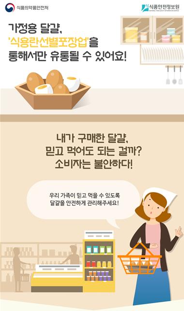 식품의약품안전처(처장 이의경)와 농림축산식품부(장관 김현수)는 가정용 달걀에 대해 의무적으로 식용란선별포장장에서 위생처리를 거치도록 한 선별포장 유통제도가 오는 4월 25일부터 본격 시행됨에 따라 일반 소비자가 더욱 안심하고 달걀을 구입할 수 있게 되었다고 밝혔다.