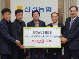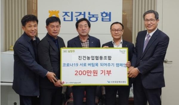진건농업협동조합(조합장 안성기)은 24일 진건읍 주민자치위원회(위원장 유효성) 및 사회단체가 적극 추진하는‘전 시민 서로 버팀목 되어주기 캠페인’에 동참해 경기사회복지공동모금회에 후원금 200만원을 기탁했다.