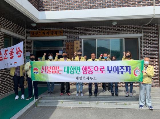 정영철 대항면장은 “산나물, 산약초 채취로 입산자가 많아 산불발생 위험이 높은 시기로, 산림소유자 동의 없이 임산물을 채취하는 행위는 불법으로 법령에 따라 처벌될 수 있어 입산객의 준법정신과 자발적 참여가 필수”라며, “면민의 안전은 물론 황악산이 지나가는 우리의 소중한 자산인 백두대간을 보호하기 위해 직원 모두가 총력을 다 하겠으니 면민과 입산객들의 적극적인 협조를 바란다.”고 당부했다.