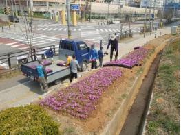 시는 지난해 10월부터 시 직영 양묘장에서 생태지킴이, 지역공동체 사업을 활용해 봄맞이 꽃 식재를 준비해왔다. 이번에는 봄철 내 꽃잔디, 무스카리, 돌단풍, 맥문동, 수선화, 비비추 등 초화류 8종, 약 5만본을 출하했다. 출하한 초화류는 관내 공원·녹지 및 가로변 22개소에 식재해 도심 곳곳에 봄 분위기를 더했다.