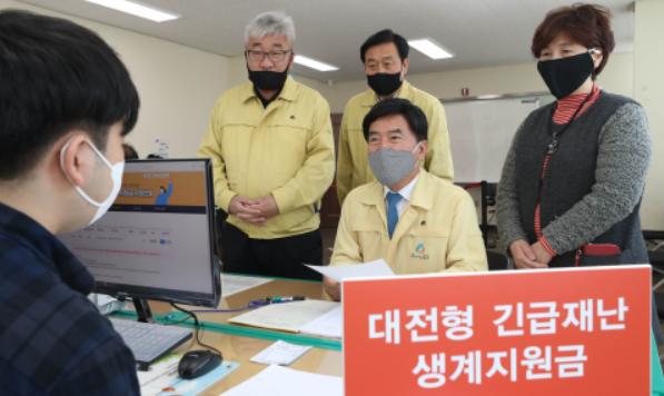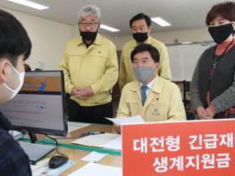 황인호 동구청장은 24일 홍도동 행정복지센터 2층 다목적실에 마련된 대전형 긴급재난생계지원금 접수 현장을 방문했다.