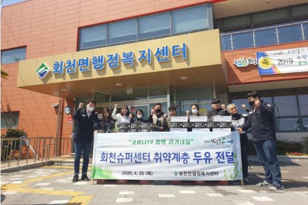 보성군 회천면행정복지센터(면장 이성호)에서는 지난 23일 회천슈퍼센터(대표 김재호)에서 기탁한 두유 300박스(3,000천원 상당) 전달식을 가졌다.