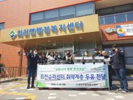 김재호 회천슈퍼센터 대표는 “지역에서 슈퍼를 운영하면서 지역민들의 관심과 사랑이 있었기에 지금의 자신이 있는 것 같다.”면서 “코로나 19로 어려운 상황에 조금이나 어려운 가정에 도움이 되길 바라고, 지역 내 어려운 이웃들과 온정을 나눌 수 있어서 기쁘다.”라고 말했다.