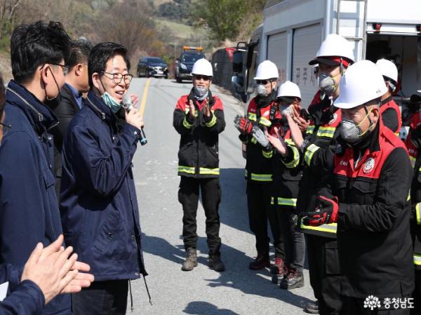 양승조 충남지사는 24일 공주시와 홍성군 일원 “산불소화시설 및 임차헬기 계류장”을 찾아 산불 예방 관계자를 격려했다.