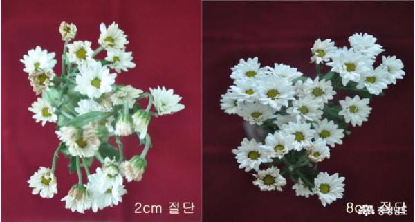 이에 도 농업기술원 화훼연구소는 수출용 국화의 수명을 늘릴 수 있는 최적의 절단 위치와 보관 방법을 연구 개발했다.