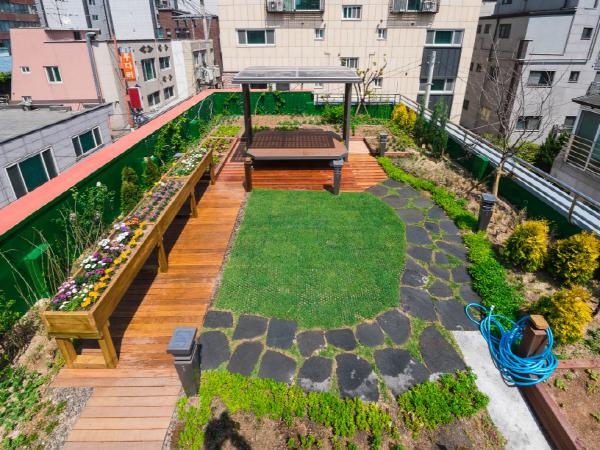 광진구(구청장 김선갑)가 자양2동에 위치한 구립 광진노인보호센터 옥상에 정원을 조성했다.