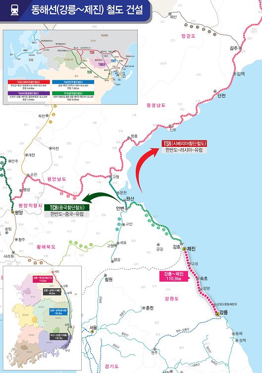‘강릉~제진’은 한반도와 유럽을 잇는 동해선 철도의 유일한 단절 구간으로 민족의 열망과 숙원이 담긴 지역의 최대 현안사업으로 ‘강릉~제진’이 연결되면 강원도는 기존 강릉선 KTX, 춘천~속초 동서고속화철도, 동해선 등과 연계하여 동서와 남북을 어우르는 북방경제시대 대륙의 관문이 될 것이며, 한반도는 철의 실크로드를 통해 동북아 물류 중심국가로 부상할 것으로 기대됩니다.